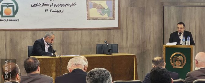 دکتر کاظمی در همایش خطر صهیونیسم در قفقاز جنوبی: دکتر احمد کاظمی استاد حقوق بینالملل دانشگاه در سخنرانی خود در همایش “خطر صهیونیسم در قفقاز جنوبی” در مؤسسه مطالعات تاریخ معاصر ایران، با عنوان «پیوند پانترکیسم و صهیونیسم در پرتو نظم آنگلوساکسونی در اوراسیا» به بررسی همکاری پانترکیسم و صهیونیسم در دو دوره تاریخی پرداخت. وی افزود: دوره اول همکاری صهیونیسم و پانترکیسم از قرن هیجدهم تا فروپاشی شوروی را شامل میشود. در این دوره پیوند صهیونیسم و پانترکیسم در دو زمینه بوده است. اول در حوزه نظریهپردازی پان تورانیسم و دوم فروپاشی عثمانی. این استاد دانشگاه در ادامه افزود: […]